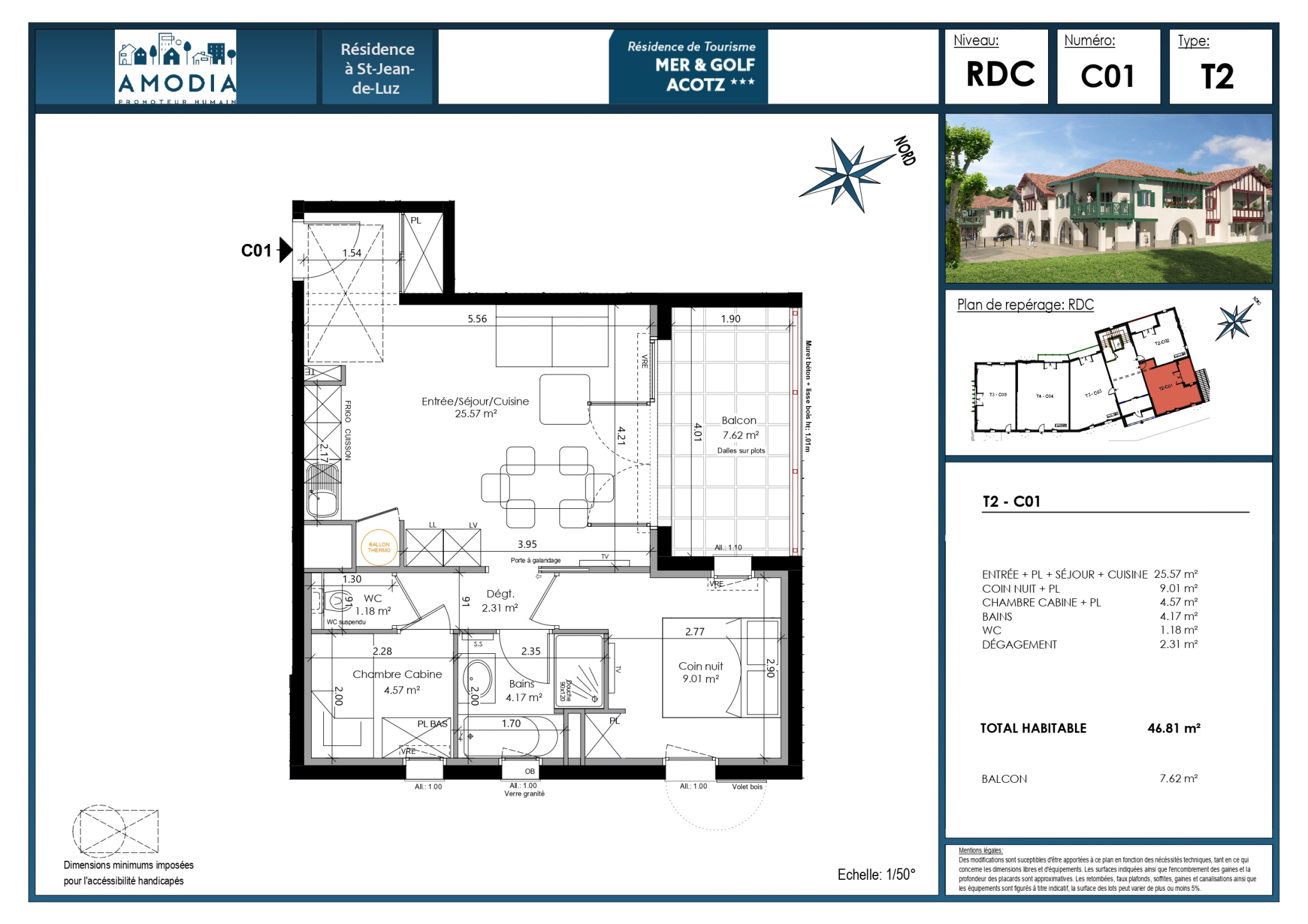 Nous vous proposons un charmant appartement au sein de la future résidence de tourisme *** "Mer & Golf Acotz". Il s'agit d'un programme neuf actuellement en cours de construction, vous garantissant les dernières normes de confort et de performance énergétique. Livraison 1° semestre 2027.