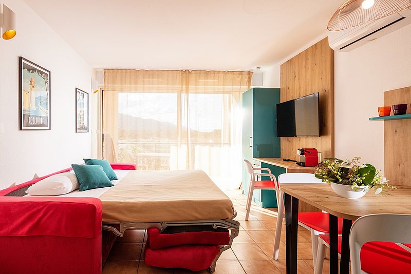 Chaque logement dispose de grandes ouvertures pour profiter d’une vue sur le port ou les Pyrénées et sur le fameux massif Canigou…