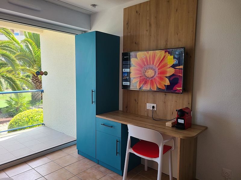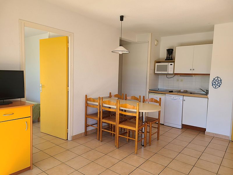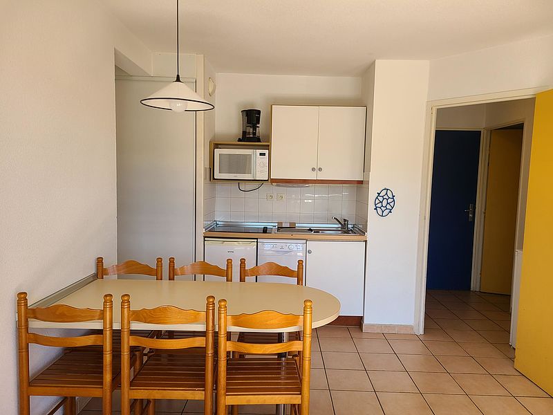 Face au port de plaisance, appartement 2 pièces de 31m² situé au rez de chaussée d'une résidence. Ce bien comporte une kitchenette ouverte sur séjour, une chambre et une terrasse de 11m². Au sein d'un complexe de 263 lots disposant d'une piscine chauffée, il est idéalement placé: à 50m des premiers commerces et restaurants et à 300m de la grande plage.