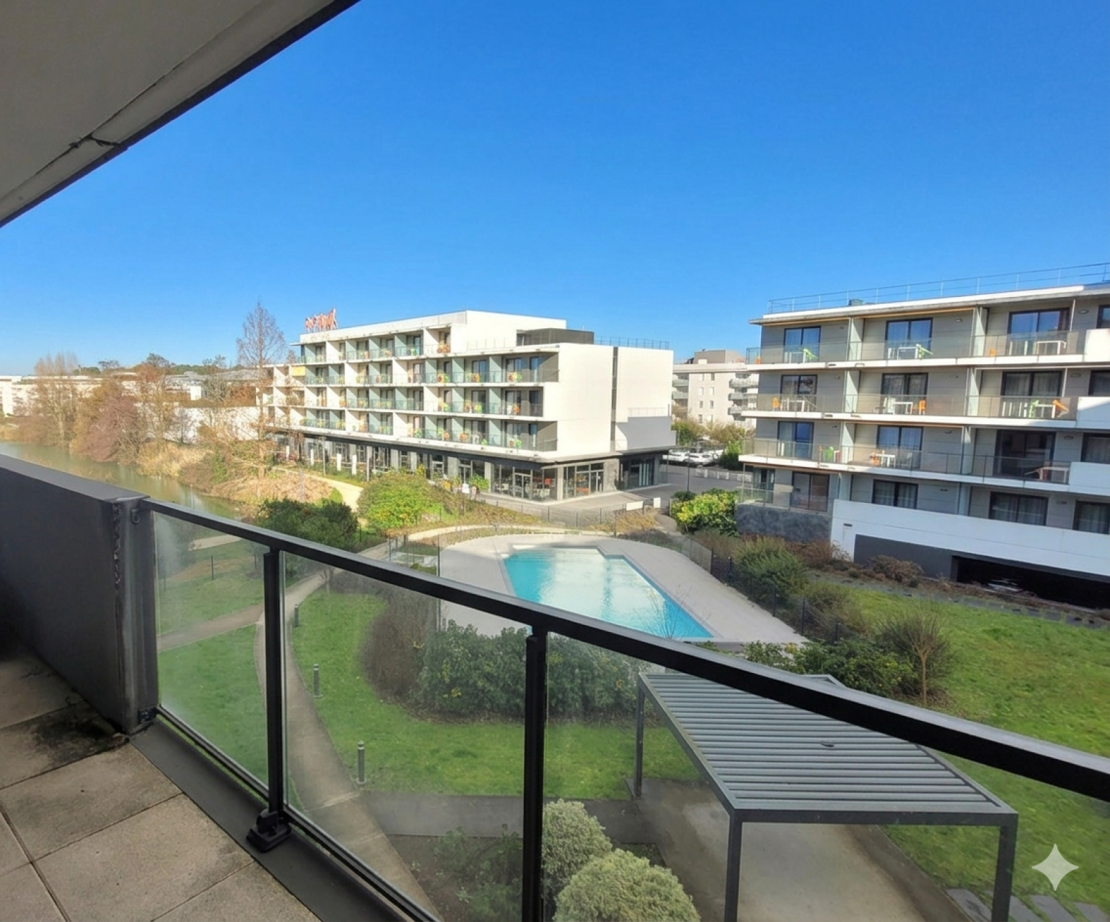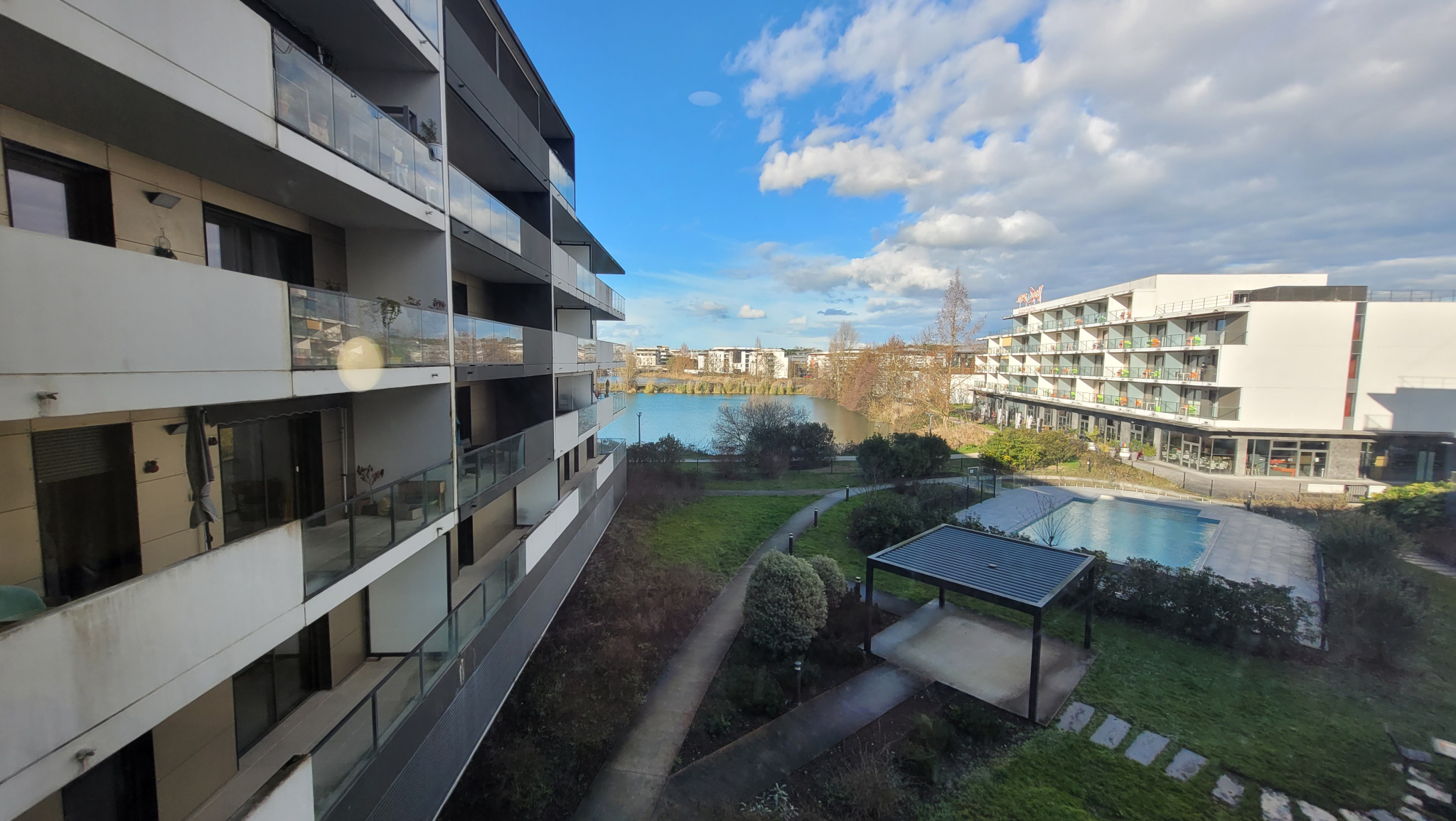 - un balcon de 9.15m² vue sur la piscine et le lac
