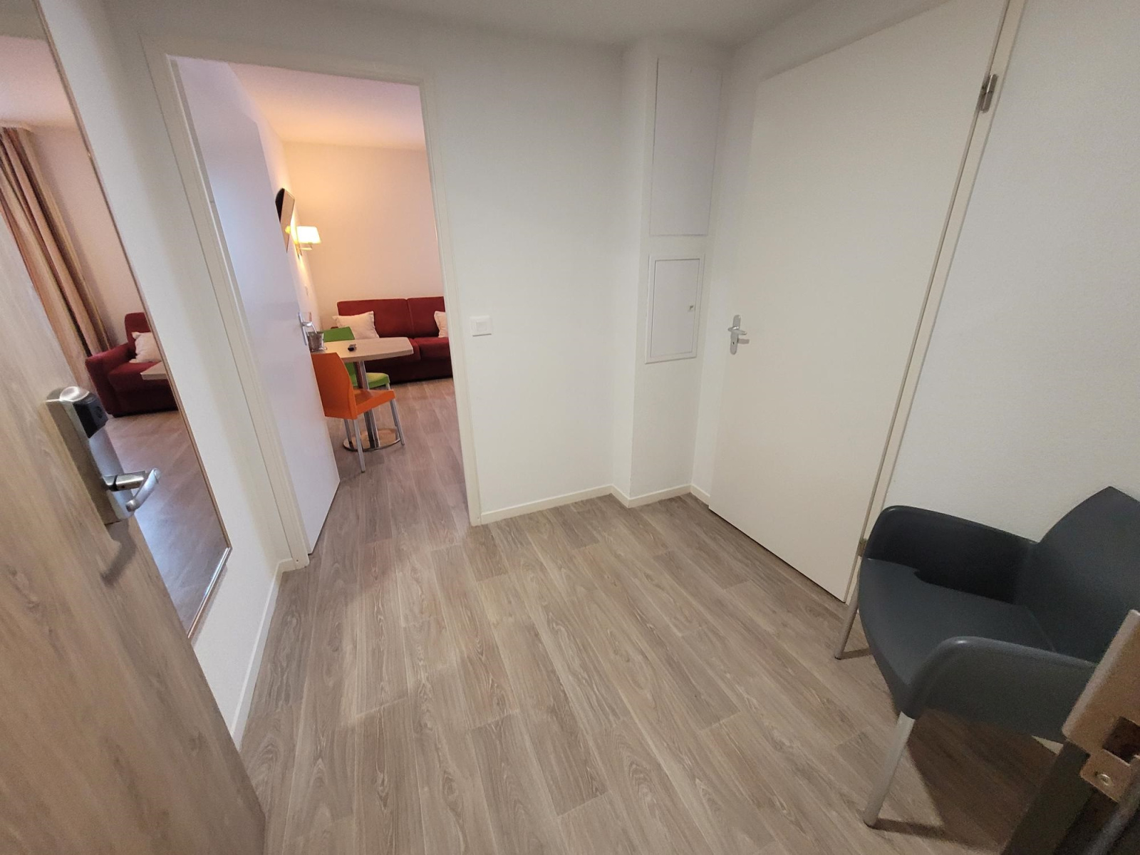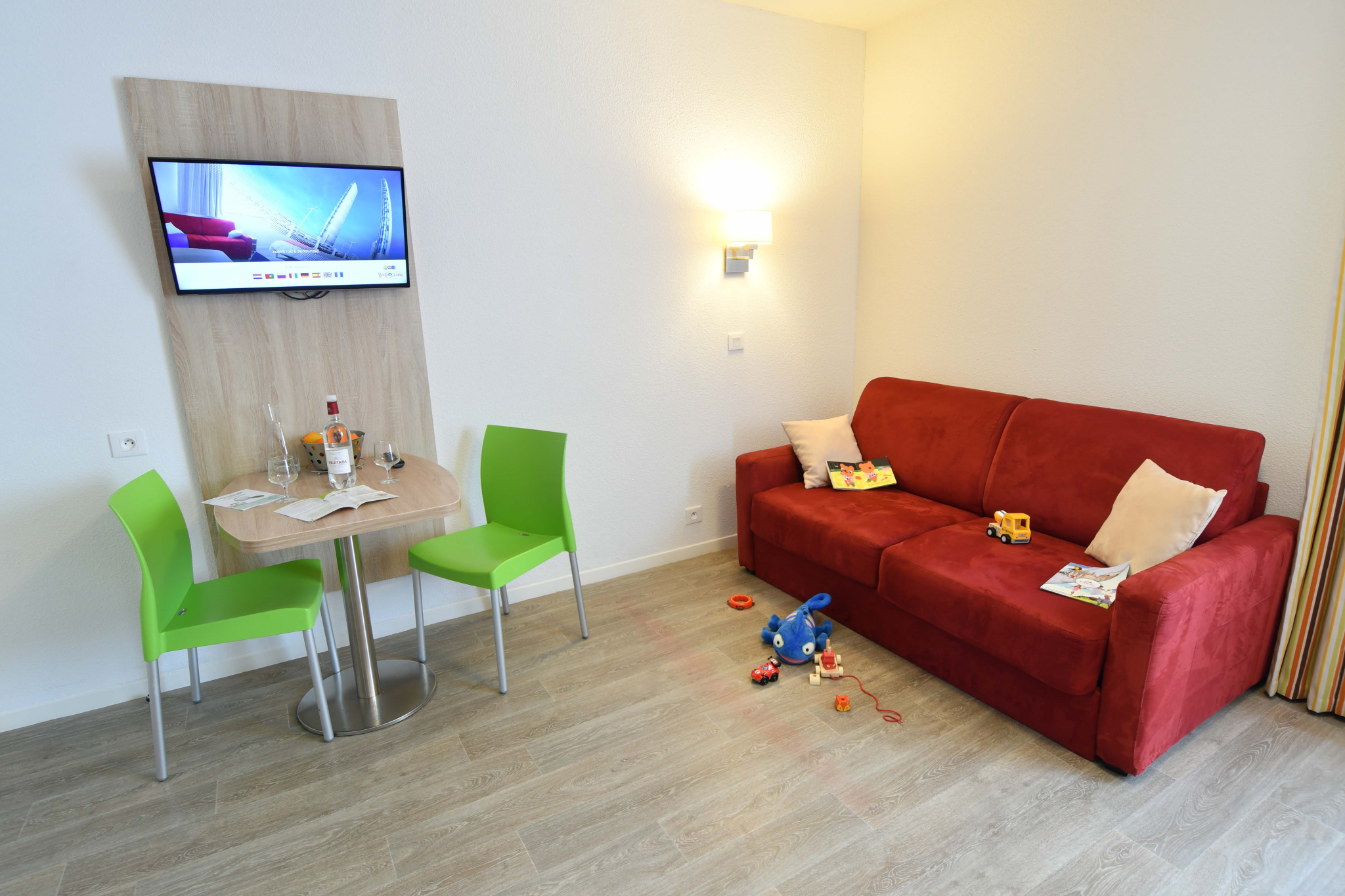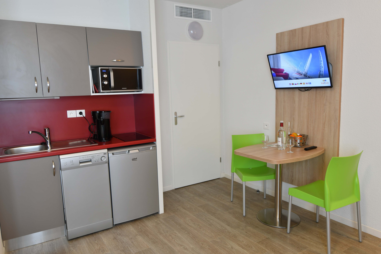 Le Studio se compose d'une entrée, d'une pièce à vivre lumineuse avec kitchenette équipée et coin repas, d'une salle d'eau spacieuse avec WC.