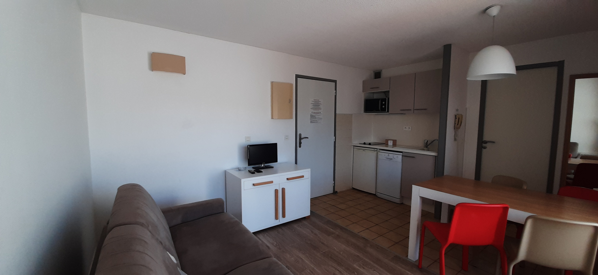 - d'une pièce de vie avec kitchenette ouverte sur séjour,