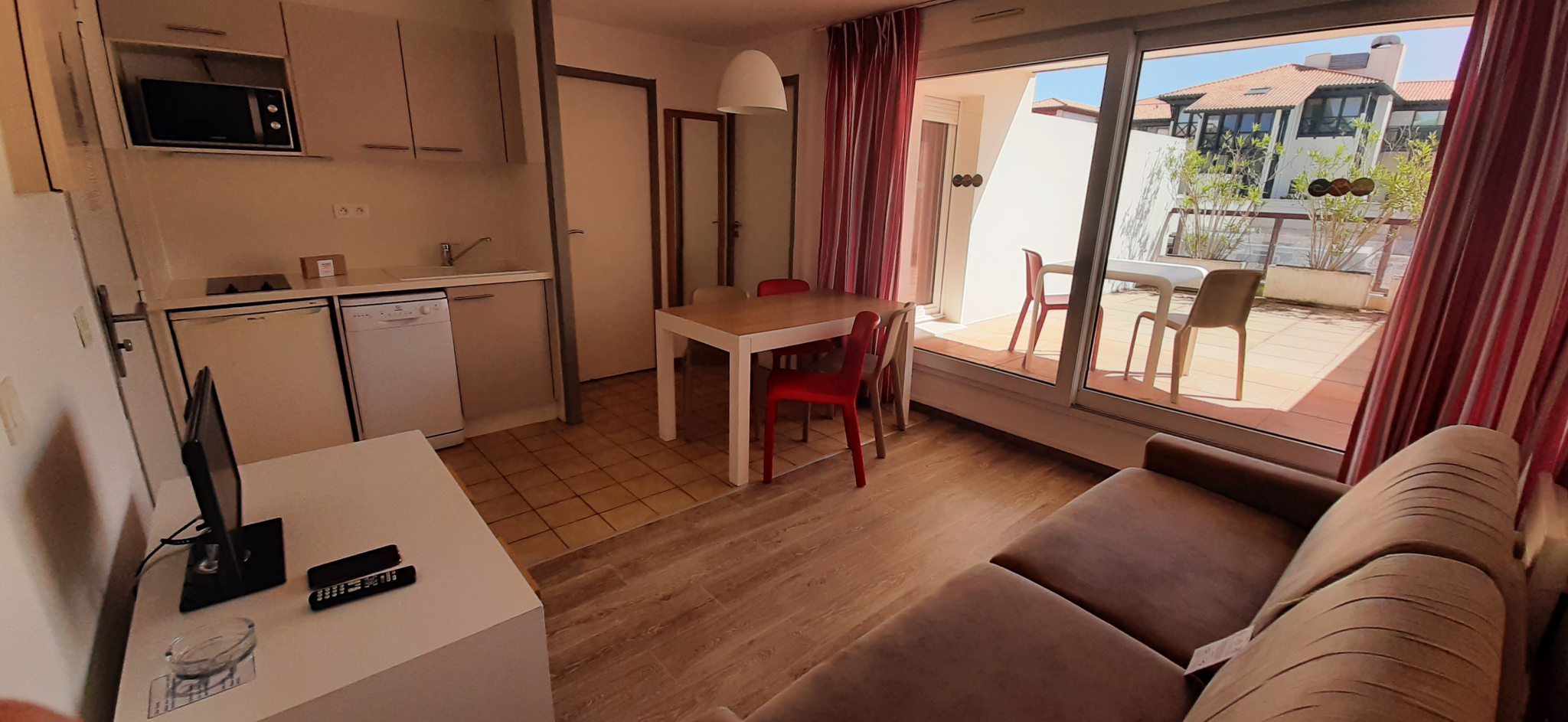 Appartement de 28 m² avec terrasse de 21m², au 1° étage d'une résidence de tourisme avec piscine située sur le port de plaisance dans le quartier animée de Sokoburu. A proximité immédiate de la plage, des commerces et des restaurants.